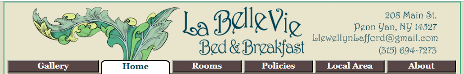 Laurel Life Celebration, June 9, 2025 in Geneva, NYDear Guests and Fans of La Belle Vie Bed & Breakfast in Penn Yan, New York, Laurel and I have had a wonderful run since 2010, meeting all of you and living out our dreams. B&B hosting was the most personally rewarding pursuit in either of our many-faceted careers (notwithstanding, the most energy-consuming). As of the 2020 pandemic, we were forced to close to the public. But having devoted ten years of our lives to the endeavor, we decided it was time to move on and focus on our specific personal passions. For me, Llewellyn, that was music composition, singing, photography, and writing. For Laurel, it included her historical and educational websites, incredible knitting projects, crafts, and above all, genealogical research. Laurel was an exhaustive researcher and collector of archival resources. She assembled a huge collection of out-of-print physical source books, maps, newspapers, and variety of archival documents, which she patiently digitized and made available on her multiple educational websites. She'd already assembled several families' trees, with accumulated facts, stories, photographs, and full authentication — resulting in the reunification of several families. Her ongoing compilation of her own family ancestry led to documented connections of over 45,000 individuals. Her professional genealogist license was in the works. In addition to all the above, La Belle Vie guests have expressed that with Laurel in the kitchen, her talent expressed itself in three-course breakfasts of amazing variety, beauty, and taste. And you loved to chat with her and hear stories emerge from a colorful past and fruitful present with Llewellyn. The china cabinet displayed her delightful collection of classic teapots. Her overall vision was inspired — from finding the right Victorian home in the best location, to selecting the period furniture, carpets, wallpaper and pictures to hang. Our partnership was productive and our love deep and binding. Laurel even suggested the name that captured our Beautiful Life in the Finger Lakes: La Belle Vie. On May 28, 2023, Laurel suddenly and unexpectedly passed away from a brain hemorrhage. I didn't get to say Goodbye, I Love You. I got to give her CPR. She'd been as fit and healthy as ever and full of life. Her death: unpredictable and untreatable and truly unfair. Laurel was my life and my very soul. I continue to be totally lost and devastated. And still, I've been overwhelmed by and rejoice in the number of folks who have attested to Laurel's influence on them over the years, philosophically, personally, and in the beauty of her creations. The love reflected from them is exhilarating and I thank you all for those expressions! I am also proud that she was an organ donor and her liver saved the life of a fellow human in need. Laurel was the kindest, most quietly talented, creative, witty, and intelligent person I have ever met. That we meshed so seamlessly into one entity was a 28-year blessing. She brought beauty to the world and happiness to me. And so I remain devastated, eviscerated, destroyed. Laurel was my partner, my lover, my spirit. Now she must live in our thoughts and memories. As we (now I) move on, I have sold the Victorian home that welcomed all of our friends. Any of you who have visited can attest to the amazing combination of classic style, expansive space, and warmth this home represents. It's been our hope that this property can host a new family's memories and perhaps, the dreams of a new generation. To the many guests we've had the pleasure of hosting at La Belle Vie, Thank You for the ultimate social experience! We never would have been so fortunate to meet and get to know all of you — and enrich our lives — any other way. Llewellyn Lafford & Laurel O'Donnell A Life Celebration event honoring Laurel will take place June 9, 2025 at 3:00 PM in Geneva, NY.